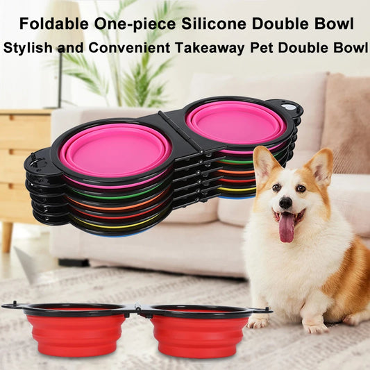 Foldable Portable Double Bowl 2 In 1 pet feeder